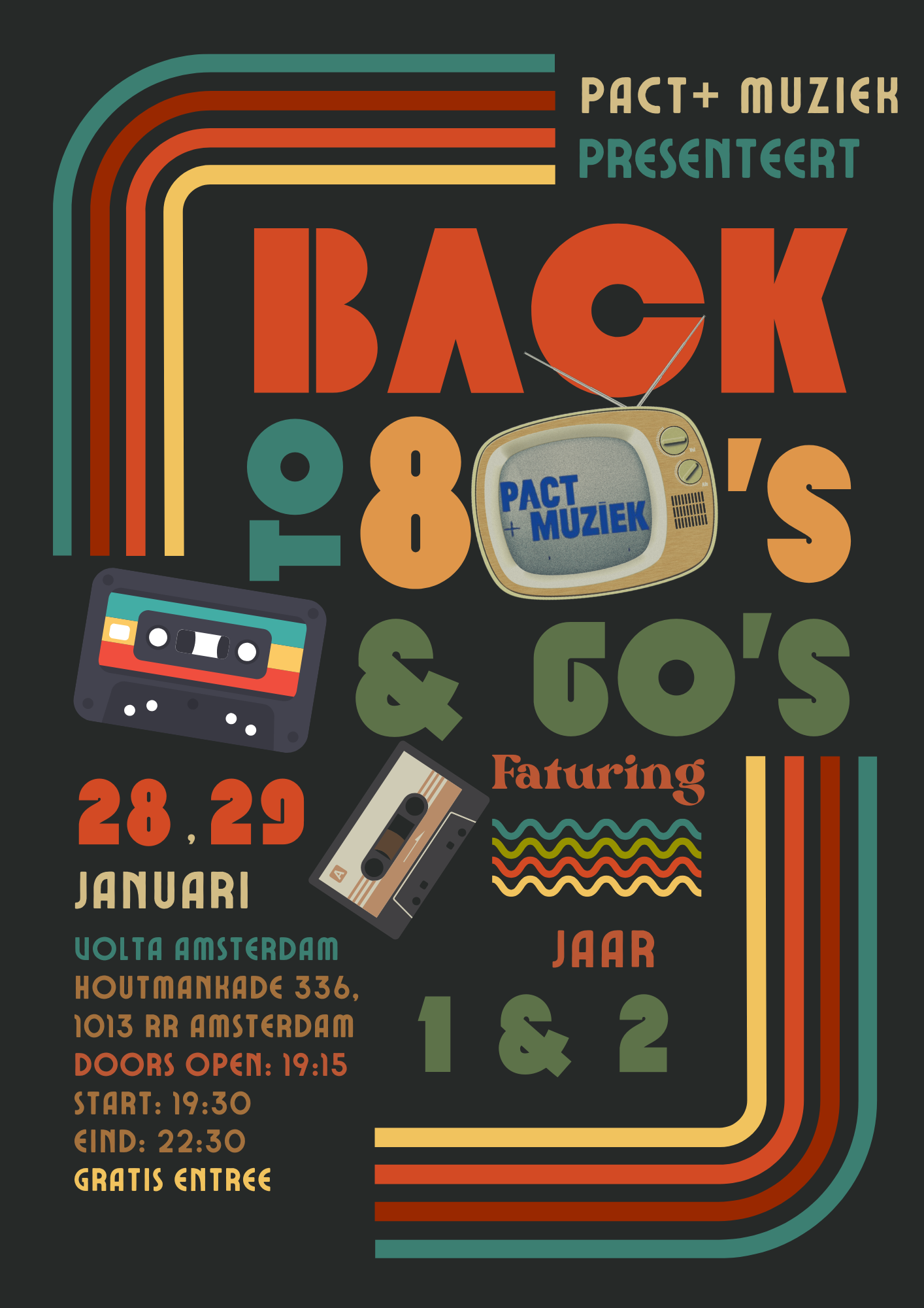 Op 28 en 29 januari kan er weer meegezongen en gedanst worden! We gaan terug naar de jaren 80 & 60 met opleiding Muziek leerjaar 1 & 2. Kom onze talenten zien grooven op het podium van Volta. Deuren open: 19:15 uur, Aanvang: 19:30 uur, Eind: 22:30 uur Locatie: Volta Toegang = gratis Kom gezellig binnenwandelen!