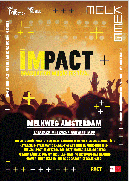 Maar liefst 26 acts, variërend van singer-songwriters tot metalbands, EDM tot hiphop, lieten van zich horen tijdens IMPACT+, het 4 dagen durende examenevenement van muzikanten en muziekproducenten in de Melkweg.